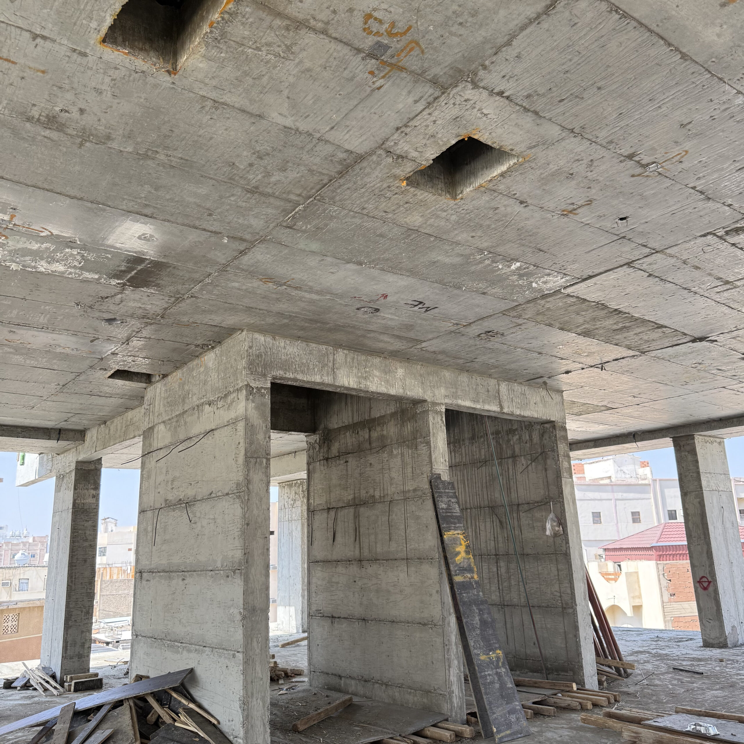 صب الخرسانات المسلحة لجميع الأدوار وفق المعايير الإنشائية.